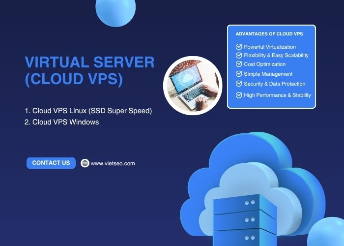 A Virtual Server (Cloud VPS) provides a powerful and flexible hosting environment built on advanced cloud infrastructure. Each VPS operates independently with dedicated CPU, RAM, and SSD storage, ensuring stable performance and high security. At Viet SEO, we offer both Linux and Windows Cloud VPS packages — optimized for speed, scalability, and reliability — making them ideal for businesses that need consistent uptime and full control over their server environment.