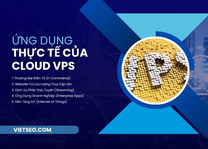 Tại Việt SEO, chúng tôi ghi nhận rằng hơn 80% doanh nghiệp đang chuyển từ hosting truyền thống sang Cloud VPS, nhằm đảm bảo tốc độ, bảo mật và hiệu suất cho website cũng như các hệ thống phần mềm nội bộ. Dưới đây là những ứng dụng thực tế nổi bật của Cloud VPS trong nhiều lĩnh vực khác nhau: